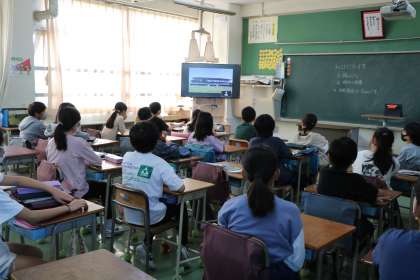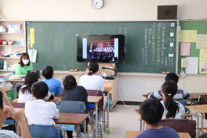 今日の全校朝会はZOOMを使い教室で行いました。先週の5年生が中心になって実施した壮行会に始まり、6年生の連合運動会の様子、土曜日の中学校学芸発表会の様子などの写真から話をしました。