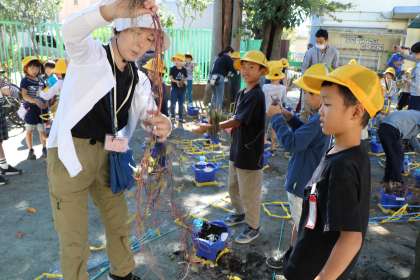 丸くするのがまずは一苦労です。そのあとに丸くツルを巻いていくのも一苦労です。でも頑張っています。
