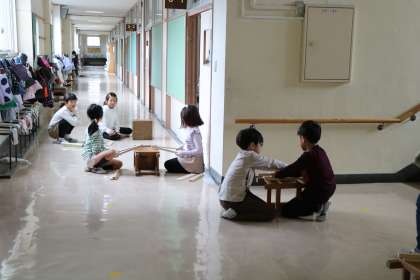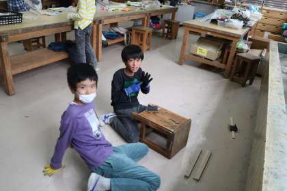 3年生図工の様子です。今日からのこぎりを使った作品作りが始まります。先生がグループごとに丁寧にのこぎりの使い方を説明してくれます。先生の説明が始まるまで、まずは場を作り待っています。安全に気を付けて、友達と協力して作品に取り組みます。