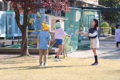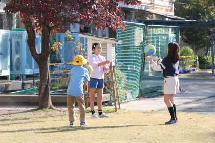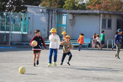 いろいろな遊びを楽しんでいます。1・4年生でボール遊びを楽しんでいる子もいます。