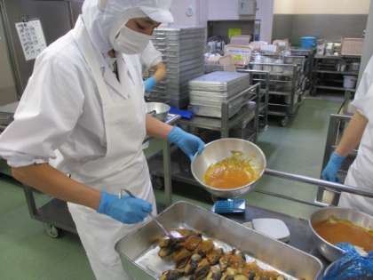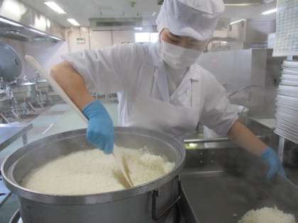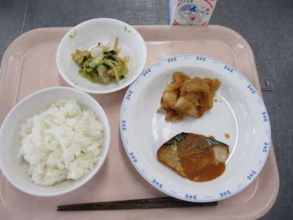今日のごはんは千葉県産の有機栽培で育てられた有機米です。炊きあがったお米はぴかぴかと光輝いていました。品種は粒すけという新しい品種のお米です。有機栽培は、農薬や化学肥料を使わず、太陽や水、田畑に住むいろいろな生き物の力をかりて、おいしく安全な農産物を作る農業のことです。3年以上農薬を使わず、国の厳しい検査に合格すると「有機JASマーク」というマークをつけることができます。