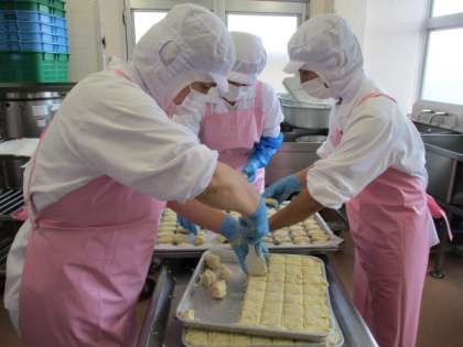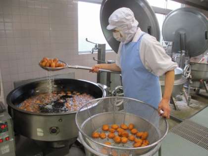 低学年、中学年、高学年で大きさをかえて、一人二個ずつ、全部で1100個以上給食で手作りしました。ふわふわのおいしい豆腐ナゲットです。