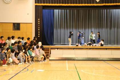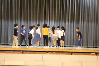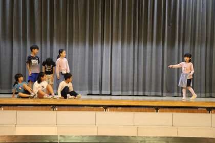 体育館で学芸会練習が始まりました。写真は2年生の様子です。
