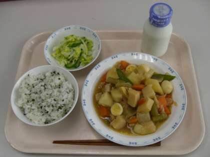 わかめとじゃこのごはん 春野菜のうま煮 ひとしお野菜 牛乳
