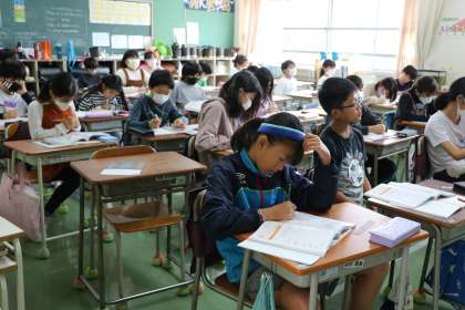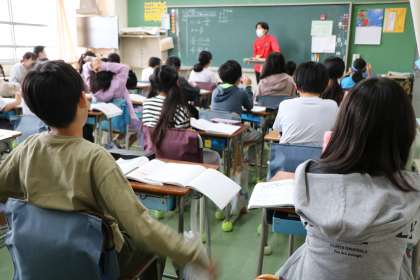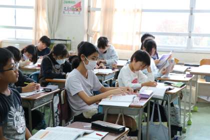 5年生算数の様子です。担任の先生が今週末まで長期出張で不在の中、何事にも全力で取り組む子どもたちです。自分たちで声を掛け合い専科教室に移動したり、給食・掃除当番活動などをしたり本当によく頑張っています。もちろん授業にも集中して取り組んでいます。