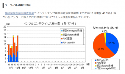 下記グラフは、東京都感染症情報センター『ウイルス検出状況』です。