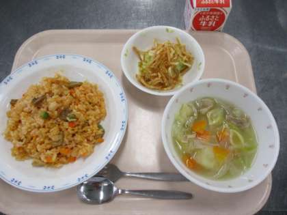 じゃがいものハニーサラダはリクエスト給食です。給食のサラダはどれも人気がありますが、このサラダがダントツで人気があります。サラダの上に、カリカリに揚がった細切りジャガイモがのっています。ドレッシングは、はちみつが入っていて、少し甘めの味付けです。このあまじょっぱさと、カリカリの食感で、はしが止まらなくなるサラダです。
