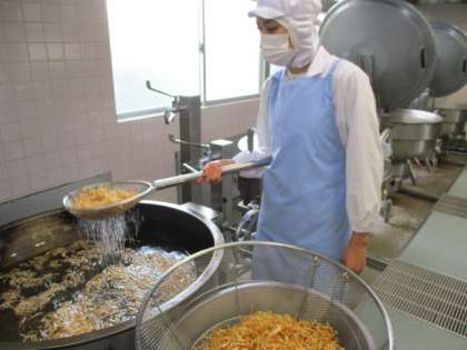 2枚目の写真はじゃがいもを素揚げしている様子です。
