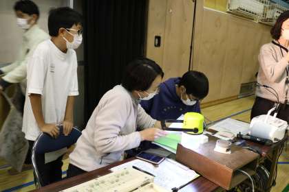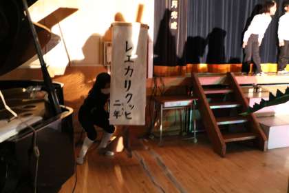 2年生の演技が始まるアナウンスが流れます。めくりプログラムは、そのアナウンスと同時に舞台から降ろします。しっかり自分の役割を果たす代表委員さんです。