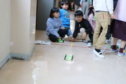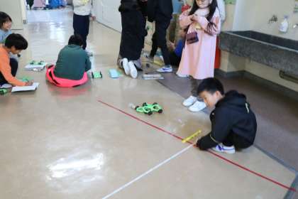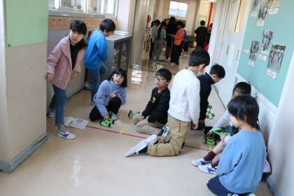 版で協力して実験に取り組んでいます。新記録が出た!と大喜びの班もありました。理由は何だったのかな?そこからが学習です。