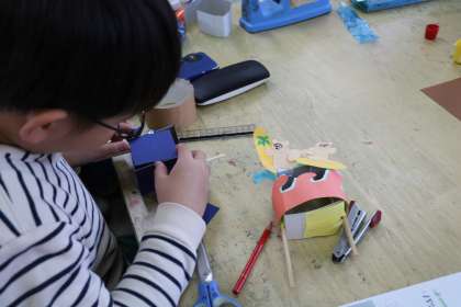 細かい工夫をする子、ダイナミックな生き物に変身する子、子どもたちのアイディアが生き生きしています。