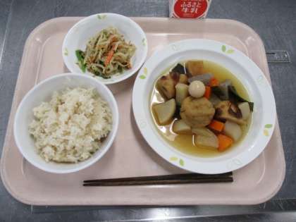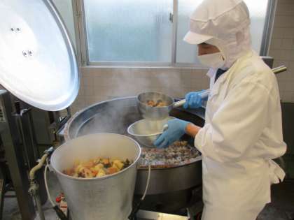 今日の給食は「せたがや育ち給食」です。世田谷区の伝統野菜「大蔵大根」を使っておでんを作りました。給食室の大きな釜で煮込んだおでんはとてもよく味がしみておいしくできました。煮崩れしにくい大蔵大根はおでんにぴったりでした。