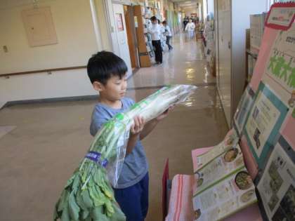 大蔵大根を展示したところ、こどもたちはその大きさに驚いていました。