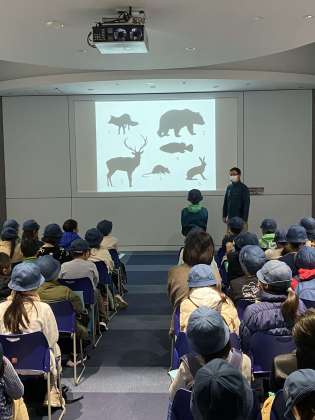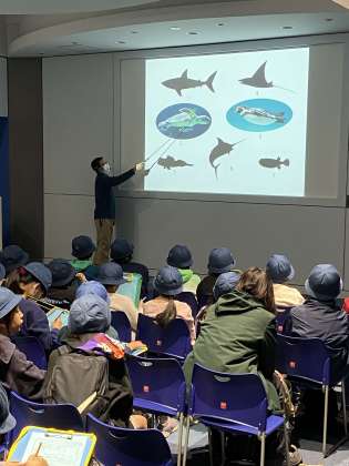 見学の後は館内のレクチャールームで「いろいろな魚の形とくらし」というテーマのお話を聞きました。みんなとても興味をもって聞くことができました。