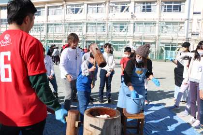 蒸したてのもち米のにおいで「うまそ〜!!」と大喜びです。
