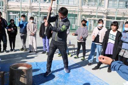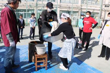 6年生は、自分たちの分のほかに、もうひと臼、ふるまい餅をつきました。