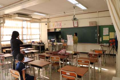 「にがてなことを たすけあい・・・」そんな優しい気持ちでいっぱいの砧小学校になってほしいと話しました。