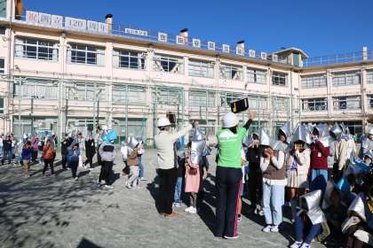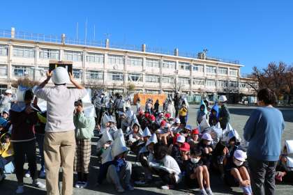 今日は毎月1回の避難訓練です。今日は理科室から出火、という想定です。使用できない階段や昇降口、煙を吸い込まないように身を低くして、ハンカチで口元をあさえながら・・・など、いくつもの指示を出しました。子どもたちは真剣に訓練に参加していました。