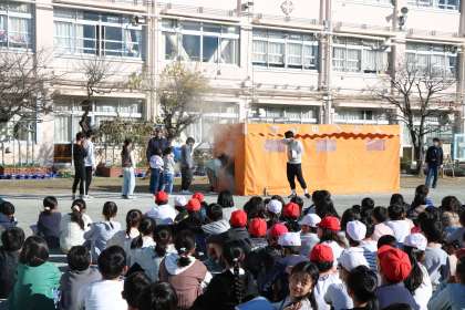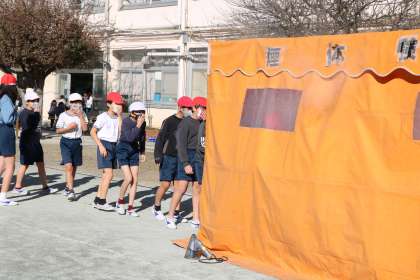 各クラスの代表が体験した後、5年生全員が煙ハウス体験をしました。