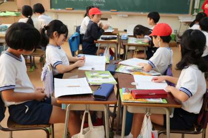 3年生社会課のまとめの学習の様子です。班ごとに話し合ったことをもとに、自分の考えをきちんとノートにまとめています。