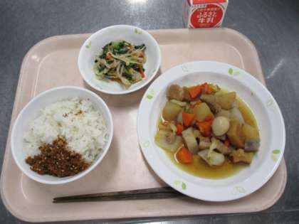 かつおでんぶは給食室で作る手作りふりかけで、こどもたちからとても人気があります。