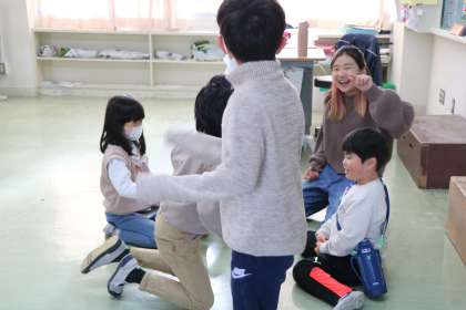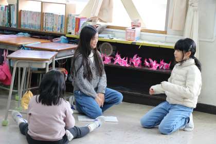 「今日はなかよし班があるね。後で遊ぼうね。」と言いました。4年生の子たちも