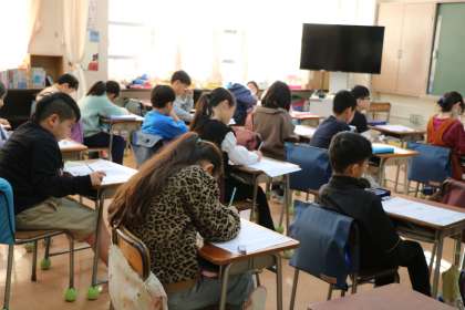 3年生の学習の様子です。テストをするクラスも、学習のまとめをするクラスも頑張っています。