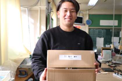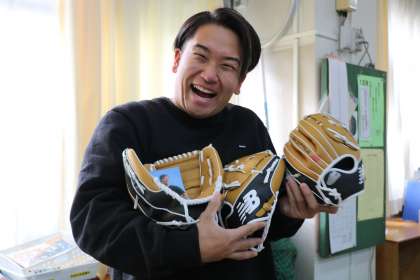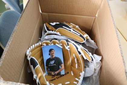 今日の日直の先生が受け取り、中身の確認を一緒にしました。右利き用のグローブ2個、左利き用の1個確かに受け取りました。確認した後は、また箱にしまって子どもたちにお披露目するまで大切に保管しておきます。