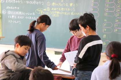 4年生の様子です。学級の係活動を相談し、係が決まったら友達同士どのような仕事をしていこうか相談しています。