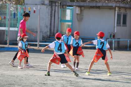今日の体育でやる「宝とりゲーム」のルール確認でした。