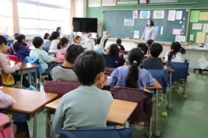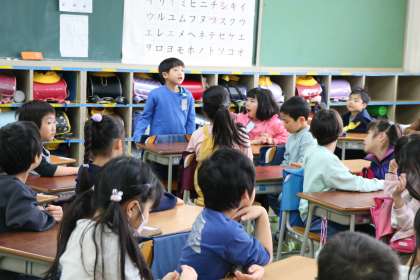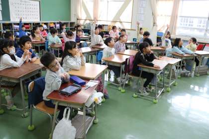 1年生道徳の学習の様子です。先生が準備したたくさんの絵や写真から気が付いたこと、思ったことを発表しています。どんなささやかなことでも、自分の思いを堂々と伝えられるには、安心して言える仲間との関係が大切です。発言する子の方に、聞いている子たちが耳だけでなく体を向けています。何を言っても受け止めてくれる温かい学級の雰囲気を感じます。