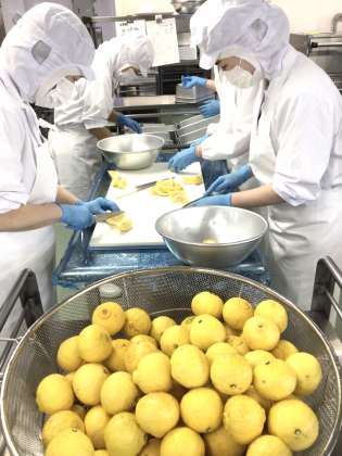 今日のくだものは「はるか」という名前の果物です。皮が黄色く、見た目はすっぱそうですが、酸味はほとんどなく、甘くてとてもおいしいくだものです。