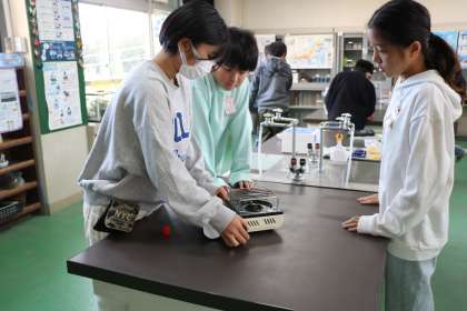 6年生理科の実験準備の様子です。2学期に学習した実験の内容を、復習し3学期の学習へとつなげます。安全第一で目にはゴーグルをかけ、机の上も整頓しながら実験をします。
