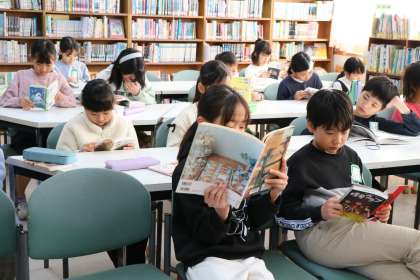 4年生図書の様子です。いろいろな姿勢はありますが、本当に静かに本の世界に集中しています。私が授業を参観しカメラを向けていることも気が付かないくらいに・・・。