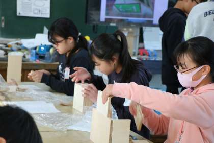友達と協力したり相談したり、切った材料を組み合わせて仕上がりをイメージしたり、楽しそうです。