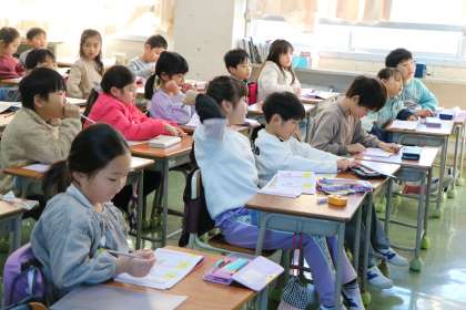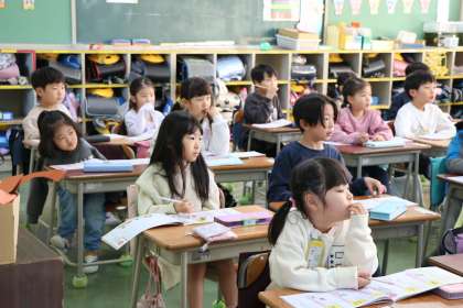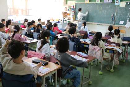 火曜日と木曜日は朝学習の時間です。写真は1年生の様子です。
