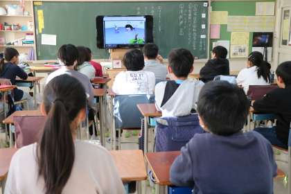 写真は6年生・5年生の外国語の朝学習の様子です。