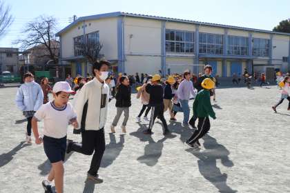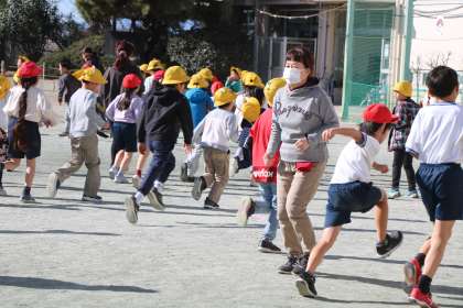 先生や運動委員のお兄さんが見守ったり、一緒に走ったりしてくれています。