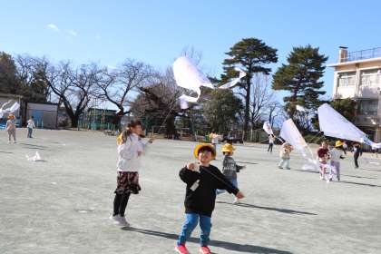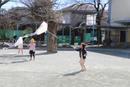 冬の遊び・・・という生活科の学習の様子です。1年生「たこあげ」です。