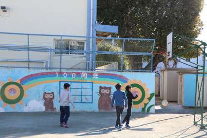 少しだけ休み時間が延長され、友達と、先生とあそぶ4・5・6年生の様子です。