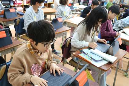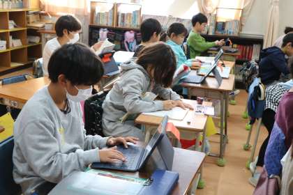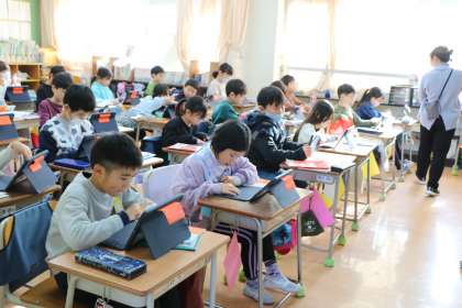 3年生国語の様子です。地図を見ながらお話を想像して物語を書いています。