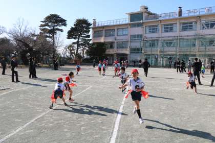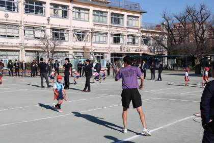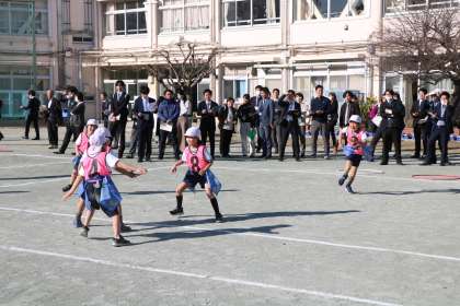 過日1月17日(水)世田谷区内全小学校教員の研修会の日に、砧小学校で体育の授業研究会がありました。体育を学ぶ先生方がたくさん来校され、2年生の授業を見て勉強されました。その時の授業の様子をお届けします。