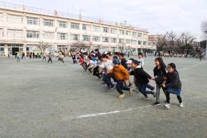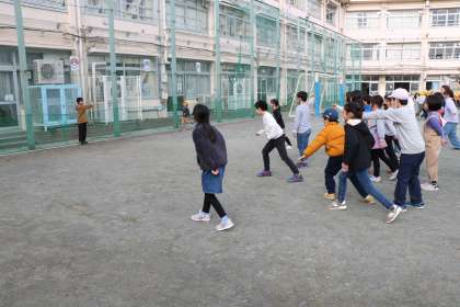 クラス全員での「だるまさんがころんだ」も、なかなか楽しそうです。鬼は大変!?