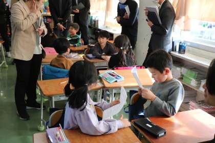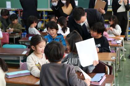 自分が書き込んだワークシートをもとに、友達の考えも聞きます。自分の考えを認めてもらったり、ほめてもらったり、新しい意見をもらったり、とても仲良く話し合いができています。
