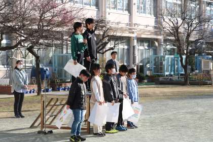 全校朝会の中で代表委員会による「あいさつ運動」実施の案内がありました。元気な挨拶いっぱいの砧小学校にしていきましょう。