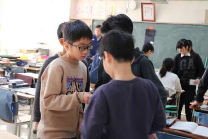 6年生理科の様子です。今まで学習したことをヒントに、次の課題に向けて自分なりの予想を立て、友達と議論しています。どのような結果になるか実験もさらに楽しみになることでしょう。