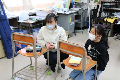 なかよし班活動で使っていない教室にいて何やら一生懸命に・・・