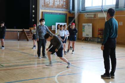 4年生体育の様子です。明日の長縄集会に向けて、少しの時間も集中して取り組みます。跳べた子はもちろん跳べなかった子にも前向きな声が飛ぶところが、子どもたちの優しいところです。