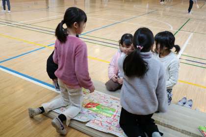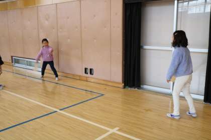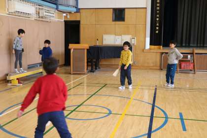体育館はエアコンもついていますし、けん玉や羽根つきをするとポカポカ体が温まてきます。