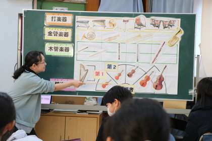 5年生音楽の様子です。世田谷区の5年生は音楽鑑賞教室という、大きなコンサートホールに行き生のオーケストラを聞く機会があります。砧小学校の5年生も今月行ってきます。その事前学習をしている様子です。